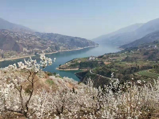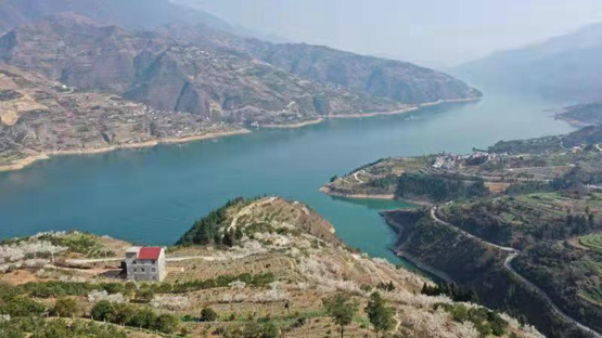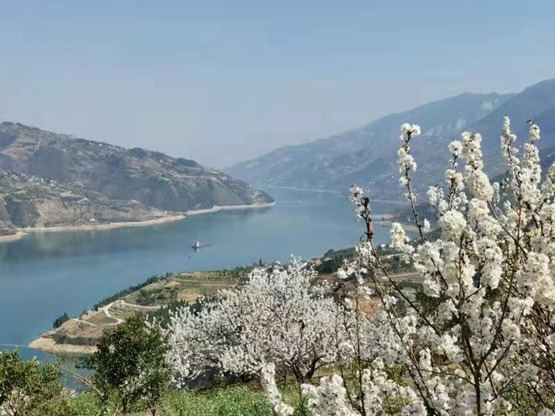 長江三峽巫山段櫻桃花競相開放。 巫山縣委宣傳部供圖