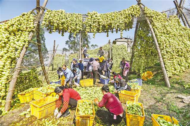 二月二十日,涪陵區馬武鎮,村民正在晾曬青菜頭。首席記者 龍帆 攝/視覺重慶