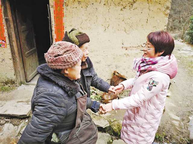 羅燕(右)到貧困群眾家走訪。(龍田鄉政府供圖)