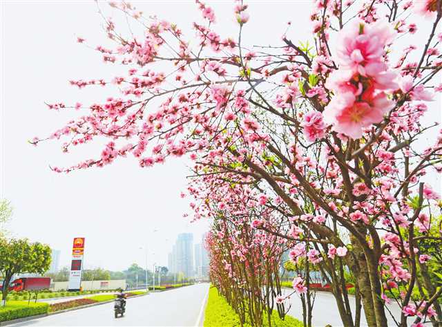 巴南大道綿延十余里的桃花姹紫嫣紅,美不勝收。(攝于二○二○年三月)特約攝影 鐘志兵\視覺重慶