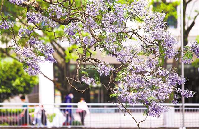 到了夏天,市民在乘坐公共交通或去江邊散步時,會發現一種紫藍色的花朵綻放枝頭,樹上花團錦簇,使得整個樹冠都彌漫著一種藍紫色夢幻氣息。它是藍花楹,有著寧靜深遠、靜謐開闊的花語含義。