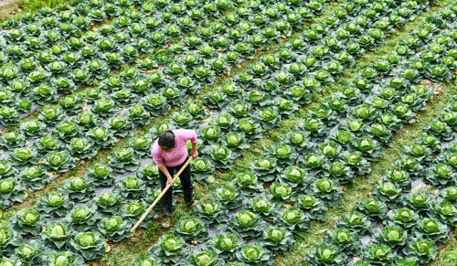 2月24日,貴州省從江縣貫洞鎮宰門村農民在蔬菜地里勞作。新華社記者 楊文斌 攝
