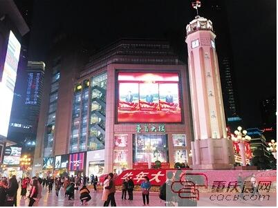 昨天,解放碑、觀音橋商圈地標性LED大屏紛紛亮燈,向全國脫貧攻堅先進個人致敬。上游新聞記者 高科 李化 攝