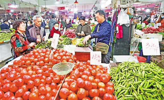 2月25日,南坪正揚農貿市場,市民們正選購時令蔬菜。據了解,每年2、3月份都是蔬菜上市淡季,但今年由于立春早,溫暖的天氣催促我市潼南、璧山、巴南等地蔬菜“瘋長”,上市品種和數量明顯增加。