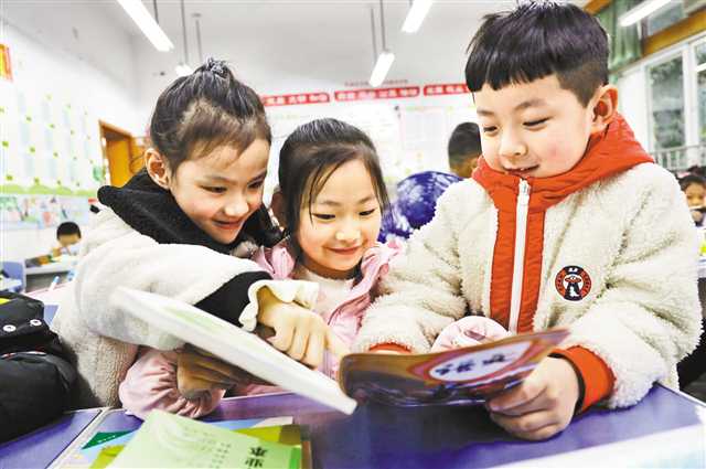 二月二十八日,渝中區中華路小學學生興致勃勃地翻閱新書。記者 盧越 攝\視覺重慶
