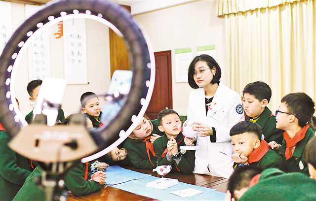 二月二十八日,璧山區人民醫院醫生給同學講解護眼知識。通訊員 胡悅建 攝\視覺重慶