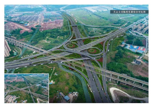 大云立交航拍實景結合對比圖。重慶市住房和城鄉建設委員會供圖