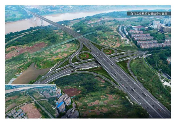 白馬立交航拍實景結合對比圖。重慶市住房和城鄉建設委員會供圖
