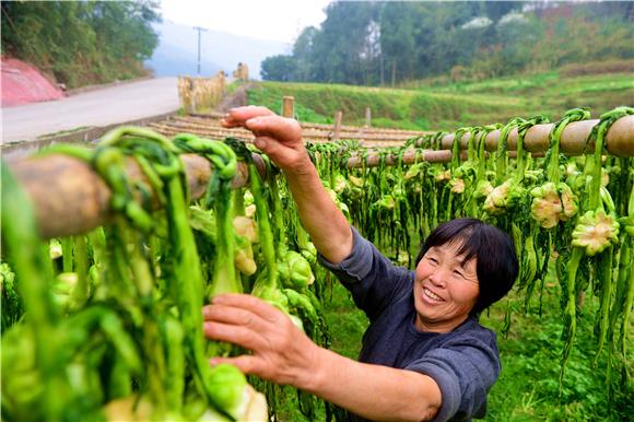 村民正在晾曬鹽菜。通訊員 成蓉 攝