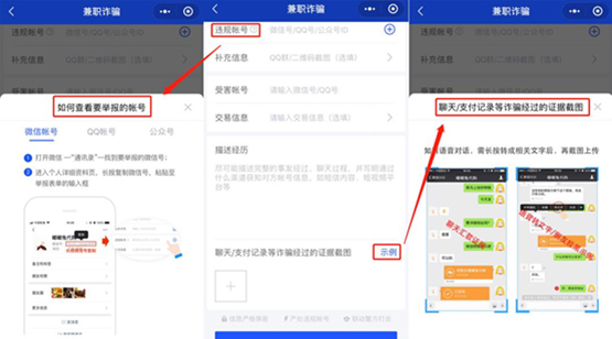 為了便于網友舉報詐騙信息,騰訊110打造了便捷舉報平臺。進入騰訊110小程序、公眾號后,點擊“我要舉報”,可以看到“違法違規信息、網絡詐騙”等7大舉報類型,共計55個子類。根據提示上傳證據截圖,填寫“違規賬號、受害賬號、舉報描述”等,便可完成舉報。如有疑惑,也可以查看“舉報類別解釋”。