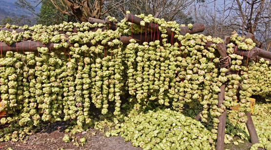 青菜頭豐收掛滿架子。 黃河攝