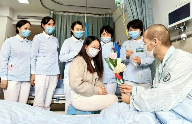 “親愛的,你辛苦了,節日快樂!”3月8日下午,正在陸軍軍醫大學新橋醫院血液病醫學中心接受造血干細胞移植的軍人顏棟(化名)給妻子張穎(化名)送上一朵手工制作的郁金香。