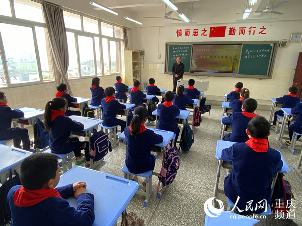 在不遠處的大盛學校,69歲的馮明權走進五年級課堂,開始講述他的黨史課。已從事教育工作40年的馮明權,曾擔任過老師和校長,與學生的情緣頗為深厚。課堂上,他結合自身的經歷,用3個故事,告訴學生們少先隊員如何“紅”起來、革命信念怎么“強”起來、基層責任怎樣“擔”起來。