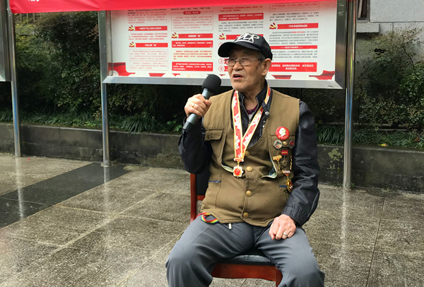 人民網重慶3月18日電 (劉政寧)“是黨挽救了我的生命,是黨給了我幸福美好的生活,沒有黨的引領和關懷,就沒有我今天的一切!3月16日,在重慶市渝北區回興街道雙湖路社區的院壩里,一位胸前佩戴著大大小小勛章的老人,面向居民們講起了他多年前投入解放戰爭的革命故事和嚴守入黨初心的感悟。