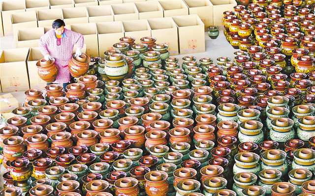 3月17日,梁平工業園區的重慶天戈陶瓷有限公司,工人將生產的泡菜壇裝箱。