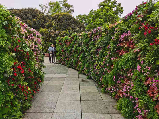 市民在賞花的同時,還能去推介會打造的“垂直花園”留影,用綠植打造的墻中間,還有數幅手繪的畫,拍出來的照片妙趣橫生。