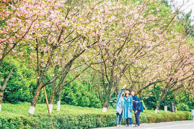 3月18日,鐵山坪森林公園,市民在櫻花大道“打卡”拍照。記者 崔力 攝/視覺重慶