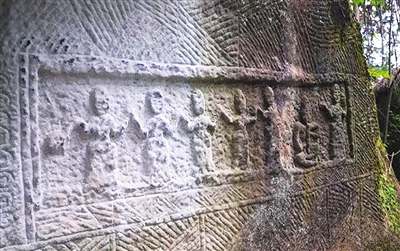 白九江說,民間巴人好歌舞,最早的就是踏踢舞,也就是說大家手牽手跳舞?脊抨犜隰虢艓r崖墓上發現,幾個人手牽著手跳踏踢舞圖案,同樣在開州紅華村的崖墓,考古隊也發現了類似的圖案。