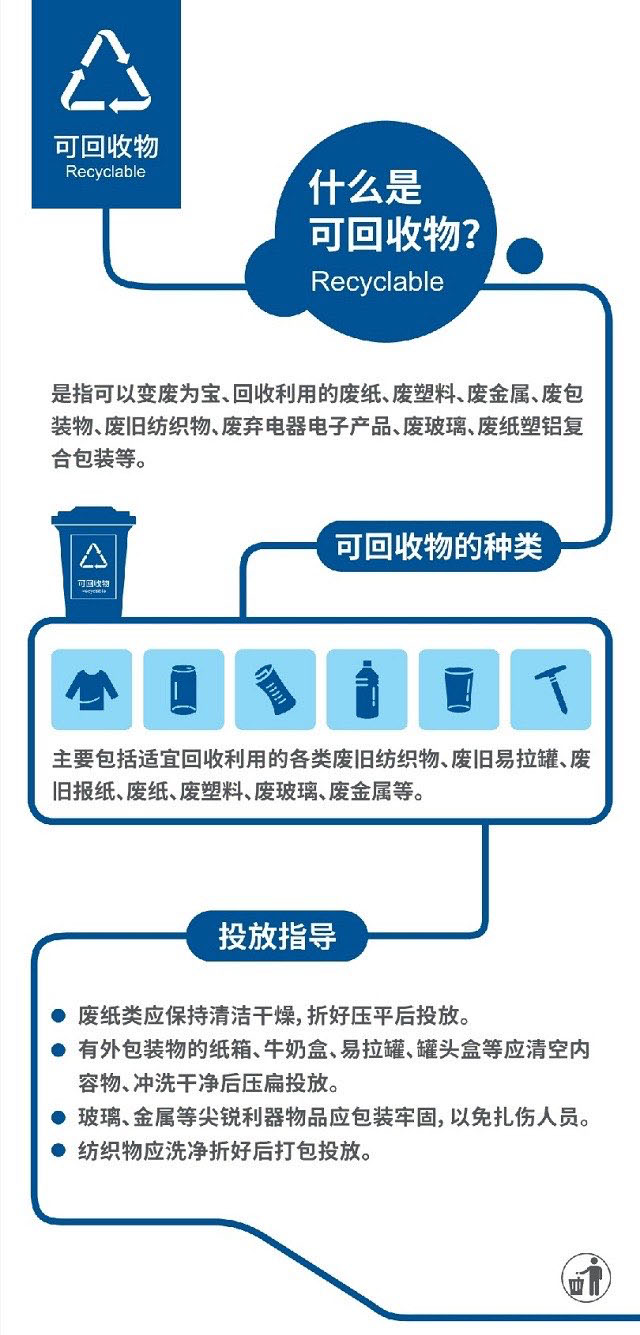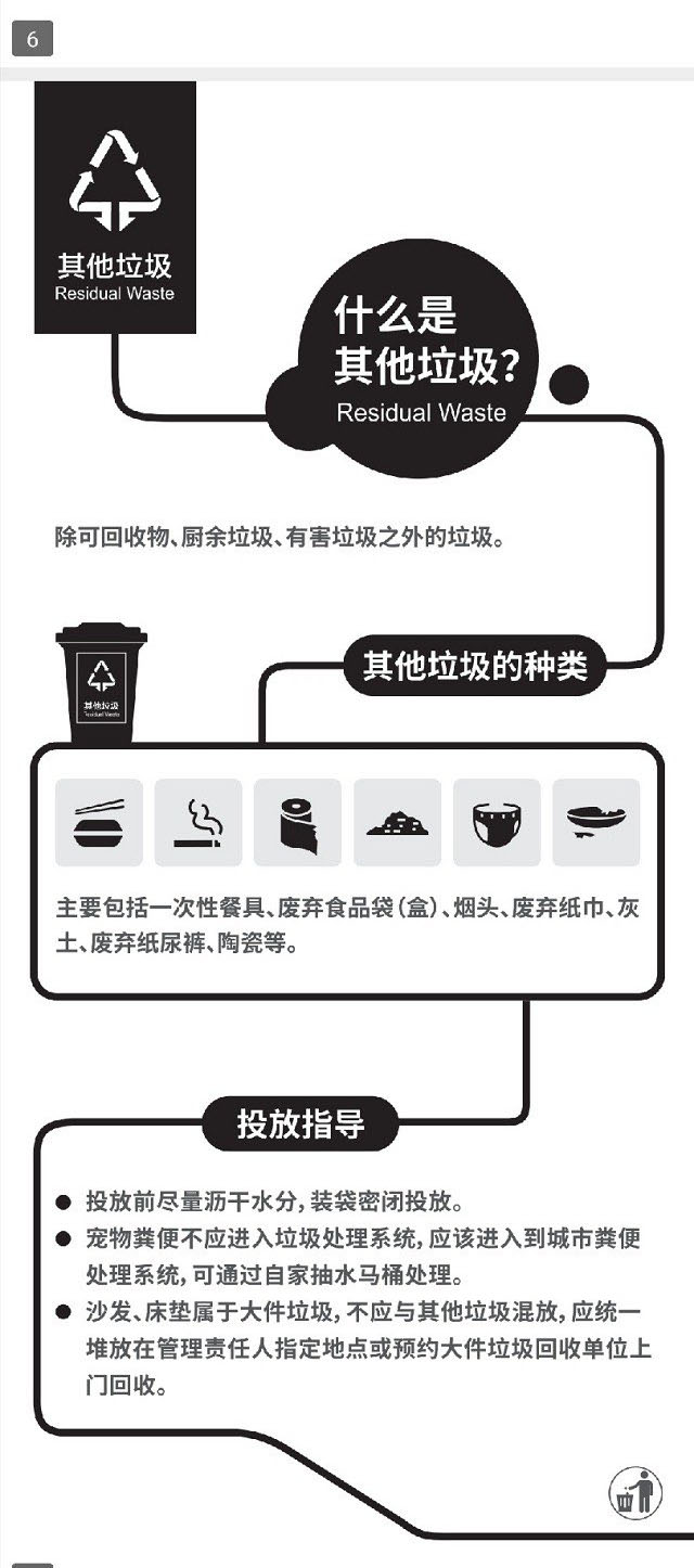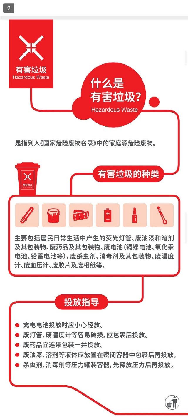 這份指南對全市垃圾分類收運設施設置進行規范。指南明確了生活垃圾四分類(即可回收物、有害垃圾、廚余垃圾、其他垃圾)標志標識。如果你發現身邊有收運設施的標志標識和指南上的不一致,就可以拍下照片,通過“重慶市垃圾分類”公眾號進行糾錯。