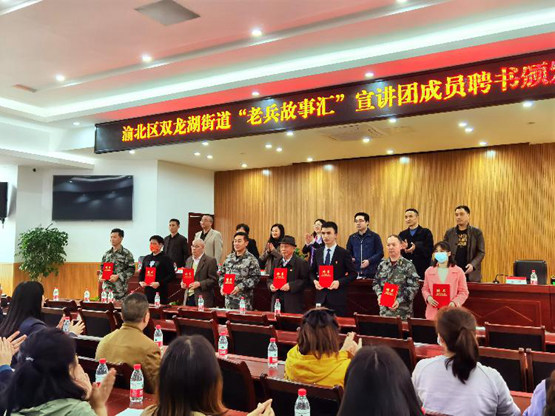 為什么要采取“老兵講故事”的方式宣講黨史?雙龍湖街道黨工委書記楊坤敏介紹:“我們街道的退役軍人服務站,是全區唯一榮獲了重慶市擁軍優屬模范單位稱號的服務站。轄區內,既有在戰斗中作出重大貢獻的老一輩革命軍人,也有退伍不褪色、自立自強、回報社會的退役老兵,還有正在為國奉獻、屢建軍功的現役軍人的家屬,這些都是我們黨史學習教育的寶貴資源!