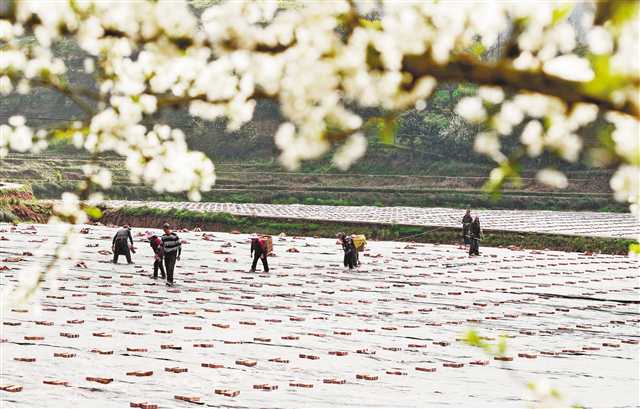 3月13日,南川區興隆鎮永福村,村民在藍莓地里忙碌。特約攝影 瞿明斌/視覺重慶