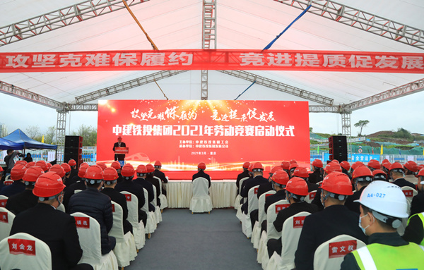人民網重慶3月23日電 近日,中建鐵投集團2021年“攻堅克難保履約·競進提質促發展”勞動競賽啟動儀式在重慶東站項目舉行。