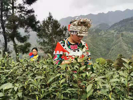 正在采茶的苗族兒女。蔣海濤攝