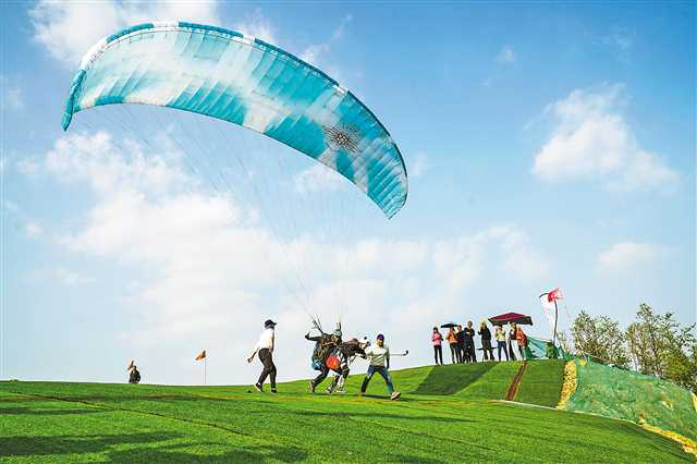 3月27日,游人在北碚區天府鎮斗鷹滑翔傘基地體驗滑翔樂趣。近年來,北碚區持續推進旅游+農業發展,打造公園城區,建設美麗鄉村,深化文旅融合,致力于把北碚建成“處處是風景、全城可休閑”的全域旅游大景區,持續完善基礎設施配套,營造良好旅游發展環境,加快建設休閑度假目的地。特約攝影 秦廷富/視覺重慶