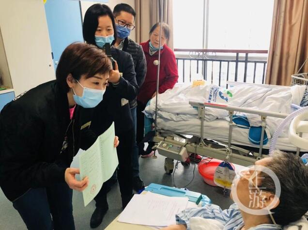 3月26日下午3時許,袁家崗重醫附一院一間病房內發生暖心一幕,重慶市不動產登記中心工作人員佩戴工作牌、戴上口罩為患病臥床的一位老人家辦理房產過戶登記手續!澳銈冊诓》坷锎钇鹛厥夤衽_,這樣的服務簡直太暖心了!”