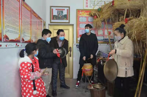 梁平癩子鑼鼓傳承人、全國優秀文化志愿者賀志燦(左三)正在教學。謝清城 攝