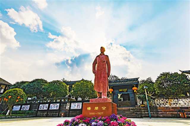 楊闇公同志舊居前的楊闇公雕像。(楊尚昆故里管理處供圖)
