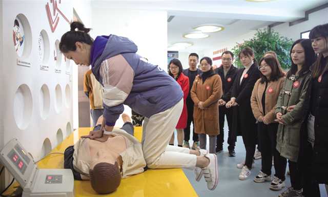 志愿者在文明實踐培訓基地參加應急救護實訓課堂教學 攝/胡昱名