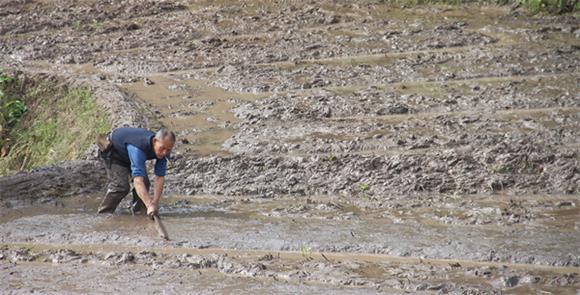 村民正在抹平秧田。通訊員 李達元 攝