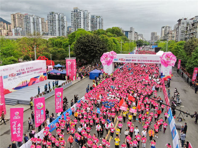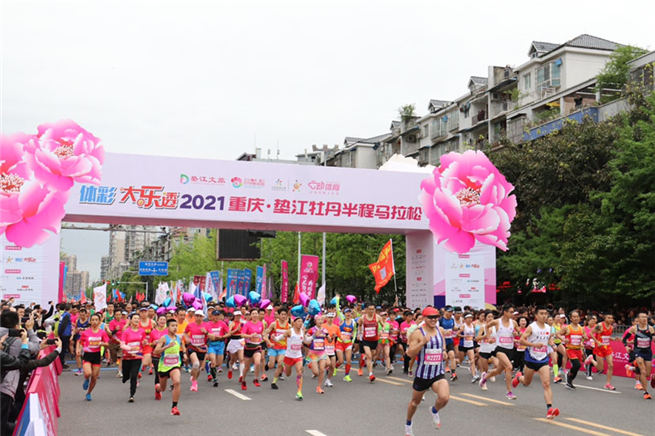 人民網重慶4月6日電  4月5日上午9:00,2021重慶墊江牡丹半程馬拉松在墊江縣南陽公園鳴槍開跑。來自全國各地的6761名跑友上演激烈角逐,用跑馬的方式感受近年來墊江所發生的巨大變化。