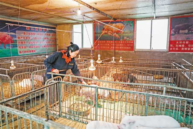 2020年4月2日,重慶市榮昌興旺種豬場的工作人員在仔豬待售舍查看仔豬的情況。(資料照片)新華社發