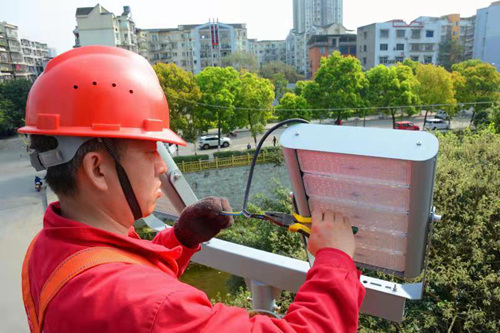 工作人員安裝路燈消除照明盲區。永川區城管局供圖