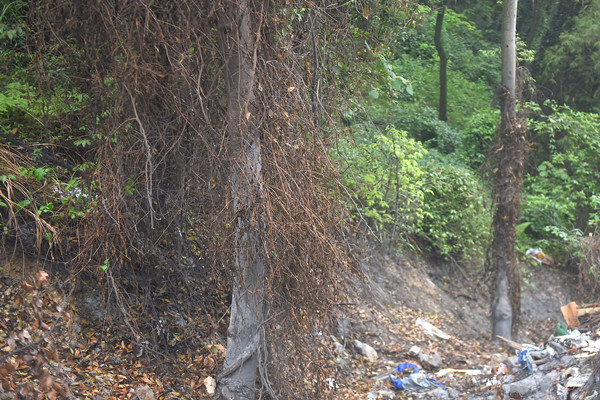 非法傾倒的鋁灰導致周邊樹木死亡。重慶警方供圖