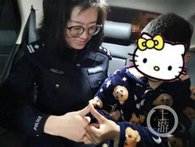 隨即,寸灘派出所民警張仕川、朱清泉趕赴黑石子碼頭,問啥孩子都低頭不語,看起來十分疲倦。擔心孩子受涼,民警將其帶上警車。充滿親和力的朱清泉充當起“臨時媽媽”,一直耐心地疏導其情緒,經過二十多分鐘的安撫,小男孩向朱清泉說出了自己的名字,遺憾的是他沒有記住父母的電話。