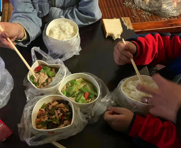 因擔心在家的兩個小孩,干警決定前往劉雪家探望劉霜和劉懵,干警到達后看見的第一個畫面就是兩個瘦小的孩子在昏暗的燈光下吃著泡面?粗鴥蓚懂事的孩子,干警們十分心疼,立即又驅車前往鎮上為姐弟倆買了兩份飯菜?粗峭袒⒀实膬蓚孩子,干警們心酸不已。