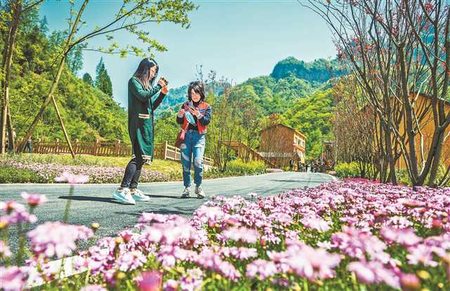 2020年4月15日,石柱縣中益鄉華溪村偏巖壩,游客正在拍攝院落里的花朵。記者 龍帆 攝/視覺重慶
