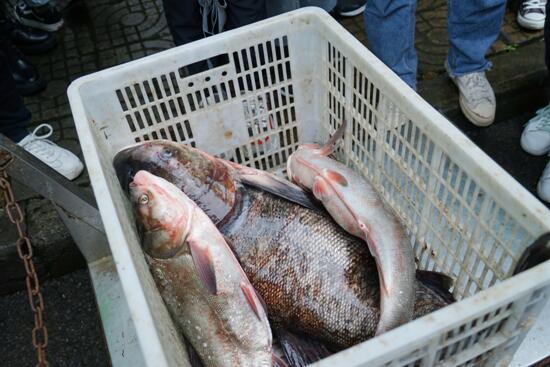 據估算,經過三天陸續的捕撈工作,累計捕魚約1300斤左右,其中最重的有32斤。