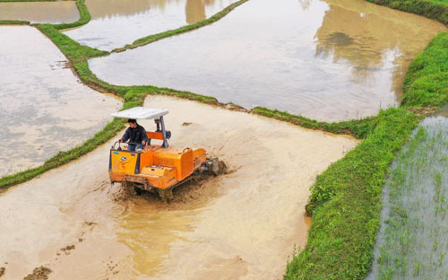 目前正值春耕生產時節,貴州省銅仁市玉屏侗族自治縣農民搶抓晴好天氣開展生產,田間地頭一派忙碌景象。