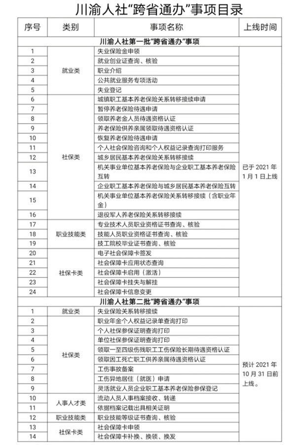 好消息!川渝人社第二批14項公共服務事項“跨省通辦”,預計10月底前上線運行。