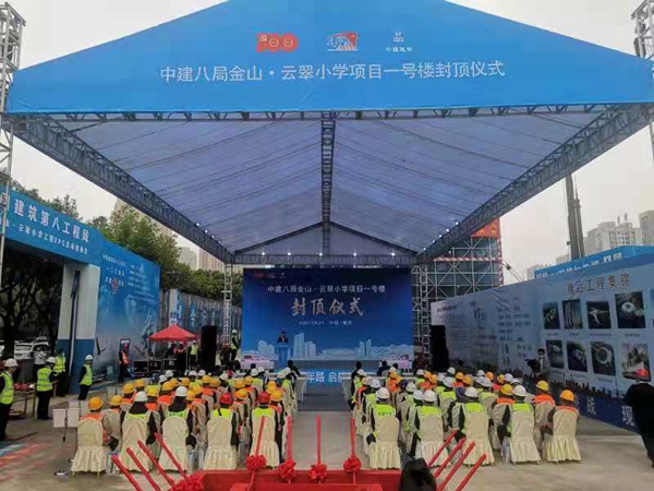 重慶兩江新區鴛鴦組團金山·云翠小學一期主體結構順利完成封頂。中建八局供圖