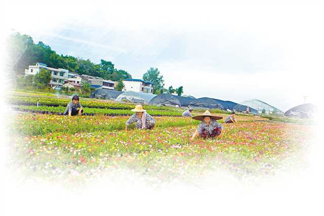 大足區高升鎮旭光村芳香產業園,工人正在田間管護花卉。通訊員 黃舒 攝/視覺重慶