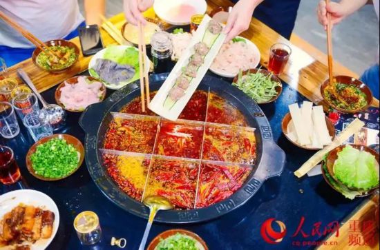 九宮格火鍋更是重慶人民必不可少的美食,沒有什么事是一頓火鍋解決不了的,如果有那就來兩頓。鄒樂 攝