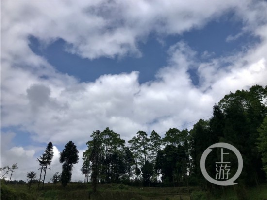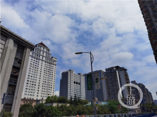 4月26日早晨,重慶中心城區上空陰沉沉的,部分地區小雨飄灑,走在路上還有些冷颼颼。但午后,陰云逐漸散去,天空放晴。下午兩三點左右,久違的藍天白云出現了。大家在朋友圈曬起好天氣。