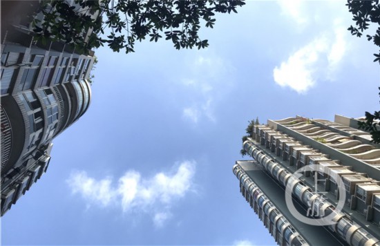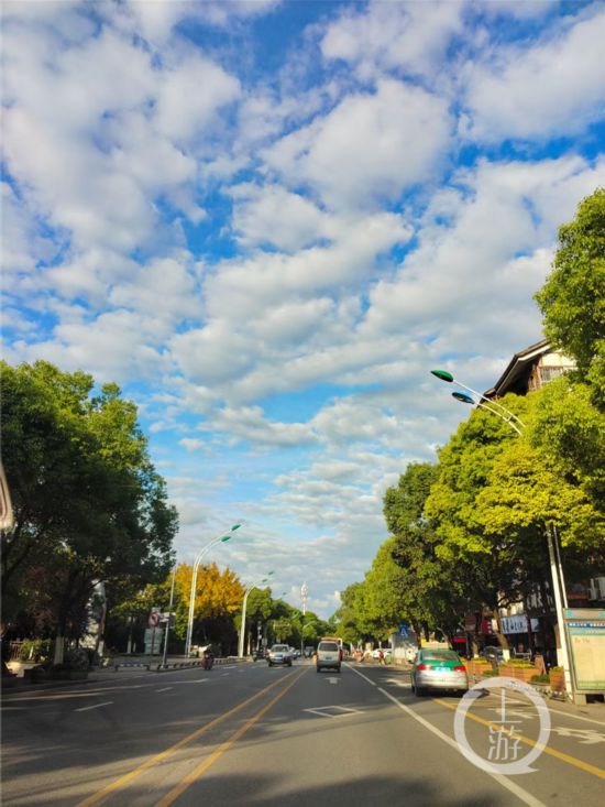 “下午在工作的時候,被眼前的場景美到了!毕挛3點半,在九龍坡區隆鑫花漾湖,喬女士在工作之余,順手拍下身邊的美景,天空像被雨水沖刷了一遍,藍藍的,很通透。