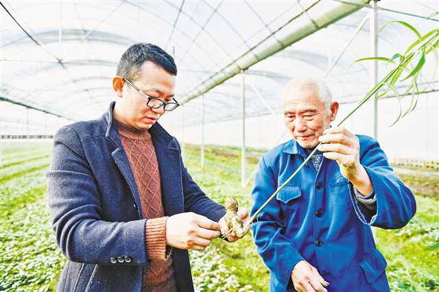 葉茂和種植戶在查看黃精苗的長勢。(資料圖片)記者 齊嵐森 攝/視覺重慶