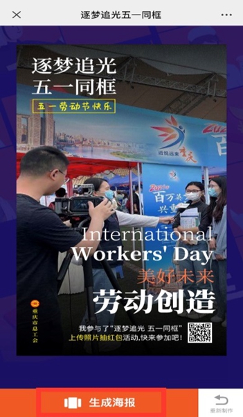 市民參與活動還可以生成定制勞動節主題海報。重慶市總工會供圖